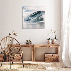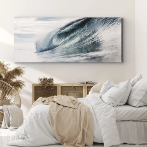 - Această imprimare pe pânză de 70x50 cm înfățișează un val dinamic al mării pe un cer luminos. O decorațiune unică ce aduce energie și armonie oricărui interior.