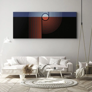 - Această imprimare pe pânză de 70x50 cm înfățișează o abstracție geometrică cu linii în bleumarin și portocaliu. O decorațiune modernă care aduce stil și dinamism oricărui interior.
