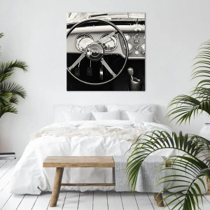 Tablou de perete – Visul unui colecționar – Interiorul alb-negru al unei mașini clasice
