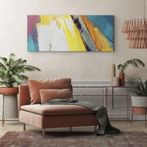 - Acest tablou înfățișează o compoziție abstractă în culori intense. Perfect pentru interioarele moderne, introduce energie și dinamism.