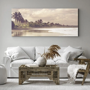 Tabloul pe pânză „Mângâierea Valurilor” este un peisaj subtil care înfățișează o plajă cu palmieri înconjurată de valuri line dimineața. Compoziția transmite o atmosferă de pace și armonie, introducând o atmosferă unică de relaxare tropicală în interior.