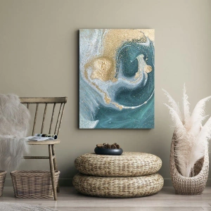 Tablou pe pânză - Vârtej de aur și turcoaz - 30x30 cm
