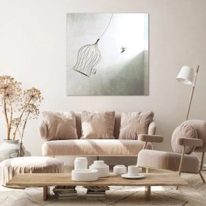 - Această pictură delicată înfățișează o pasăre eliberată din colivie pe un cer senin. Stilul său minimalist și simbolismul subtil aduc pace și inspirație interiorului. Este o alegere perfectă pentru un living sau un dormitor.