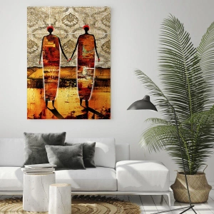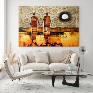 Tablou pe sticlă - Compoziție etnică în culorile Africii - 80x120 cm