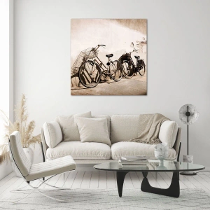 Motivul bicicletelor rezemate de perete simbolizează simplitatea, libertatea și armonia. Pictura creează o atmosferă unică ce inspiră amintiri și reflecție. Este decorul perfect pentru cei care iubesc călătoriile și decorul unic și elegant.