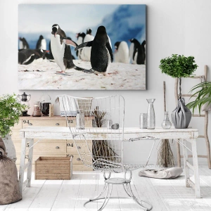 - Acest tablou înfățișează un grup de pinguini pe fundalul peisajului antarctic înzăpezit. Este decorațiunea perfectă pentru iubitorii de natură și de peisaje de iarnă, aducând armonie și liniște în orice interior.
