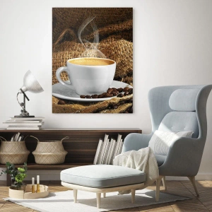 Tablou pe sticlă - Mirosul de mokka și densitatea lichidului de miere - 50x50 cm