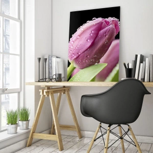 Tablou pe sticlă - Un vis de liliac în rouă - 30x30 cm
