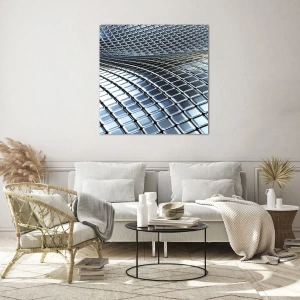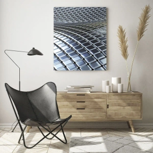Tablou pe sticlă - Val metalic argintiu - 50x70 cm