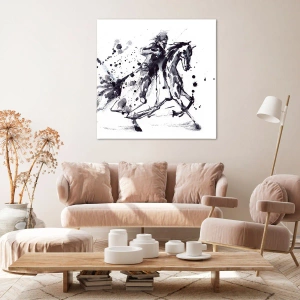 Tema unui călăreț pe un cal în galop este un simbol al libertății, forței și dinamismului. Este alegerea perfectă pentru cei care apreciază arta îndrăzneață, dar subtilă. Pictura poate fi, de asemenea, un cadou perfect pentru pasionații de cai și ecvestru.