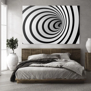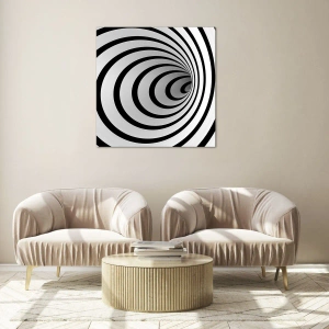 Tabloul pe sticlă „Și tu nu poți rezista?” este o decorațiune unică ce introduce în interior un element de artă modernă și design hipnotic. Punctul focal al compoziției este un model spiralat în alb-negru, care, datorită formelor sale geometrice, creează o senzație de profunzime și mișcare. Stilul minimalist și culorile contrastante fac ca imaginea să fie atrăgătoare și un accent unic în orice interior.