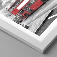• Posterul înfățișează un autobuz londonez roșu pe un fundal urban alb-negru. O decorațiune impresionantă, perfectă pentru iubitorii de stil urban și de Londra.