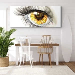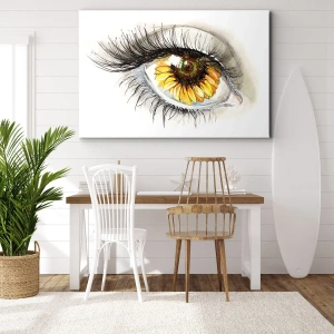 Tablou pe pânză Canvas - Ochi artistic cu iris în formă de floarea-soarelui - 70x50cm - O privire la fel de fierbinte ca vara - Decorațiune modernă pentru perete pentru living și dormitor ARTTOR