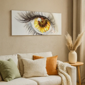 Tablou pe pânză Canvas - Ochi artistic cu iris în formă de floarea-soarelui - 70x50cm - O privire la fel de fierbinte ca vara - Decorațiune modernă pentru perete pentru living și dormitor ARTTOR