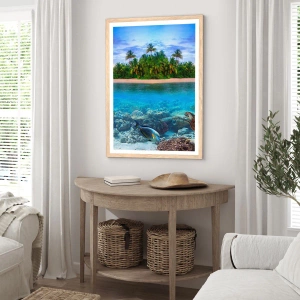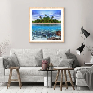 Poster în ramă de stejar deschis - Insula paradisiacă vă invită - 70x50 cm