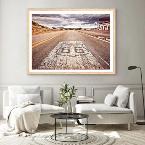 Poster în ramă de stejar deschis - Mother Road - o legendă americană - 40x40 cm
