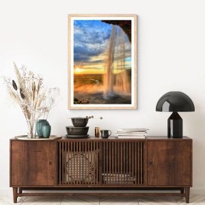 Poster în ramă de stejar deschis - Lumea din spatele vălului de picături - 91x61 cm