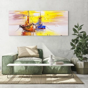 Tablou pe sticlă - O binemeritată odihnă în port - 100x40 cm