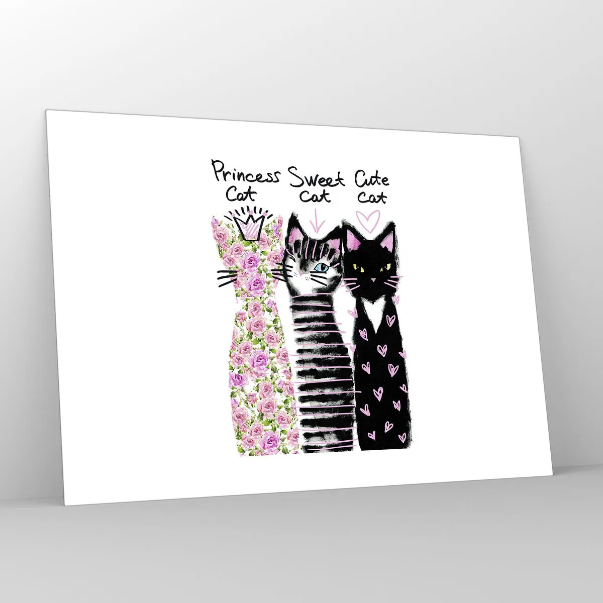 Tablou pe sticlă - Trei pisici - 100x70 cm