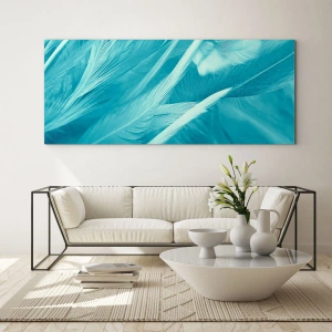 Motivul cu pene turcoaz se potrivește perfect aranjamentelor moderne, minimaliste, introducând un element de prospețime și farmec natural. Tabloul se va potrivi bine într-un living, dormitor sau birou, adăugând un caracter subtil spațiului.