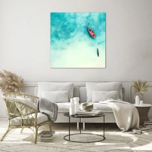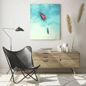 - O compoziție minimalistă de bărci plutind pe apă azurie. Un decor care aduce armonie și o atmosferă tropicală interiorului.