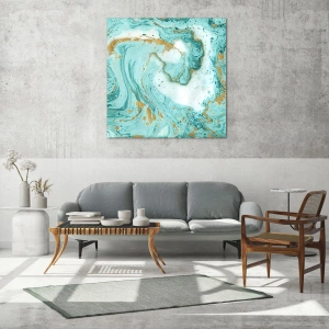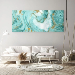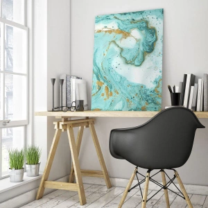 Tablou pe sticlă - Model în stil marmoră turcoaz și auriu - 70x50cm - Sub marele val al perioadei Edo - Decorațiune modernă pentru perete pentru living și dormitor ARTTOR