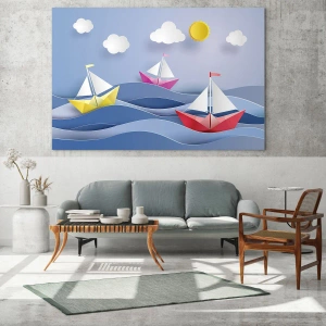 Motivul bărcilor de hârtie pe fundalul apei este o modalitate foarte creativă și artistică de a prezenta un peisaj estival. Acest tablou este perfect pentru interioarele care caută nu doar estetică, ci și energie veselă și stil creativ. Culorile sale atrag privirea și introduc armonie în spațiu.