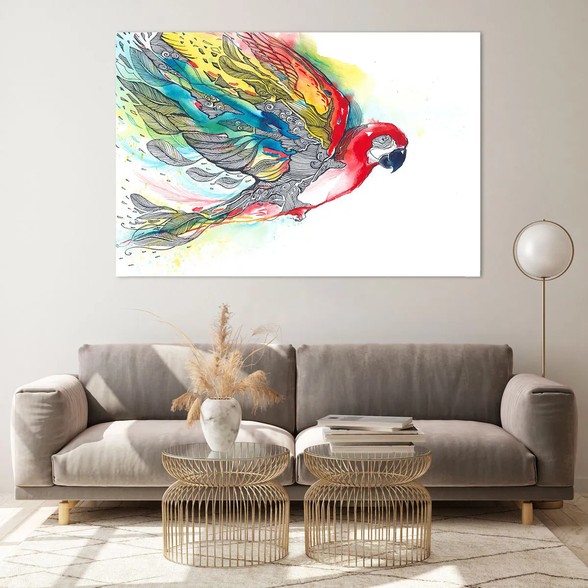 Instalarea este extrem de simplă și ușoară, tabloul din sticlă este gata de agățat pe perete, este echipat cu un cuier metalic montat pentru o instalare ușoară și distanțiere din spumă