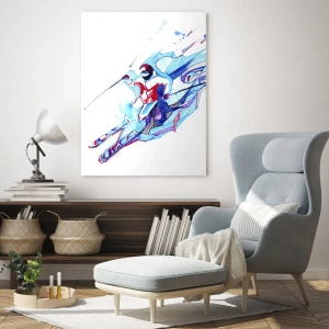 Formatul orizontal, cu dimensiunile de 70x50 cm, face imaginea versatilă - perfectă pentru decorarea unui living, a unui dormitor, a unui birou sau chiar a unui spațiu sportiv. Motivul schiorului aduce energie, pasiune și stil modern în interior.