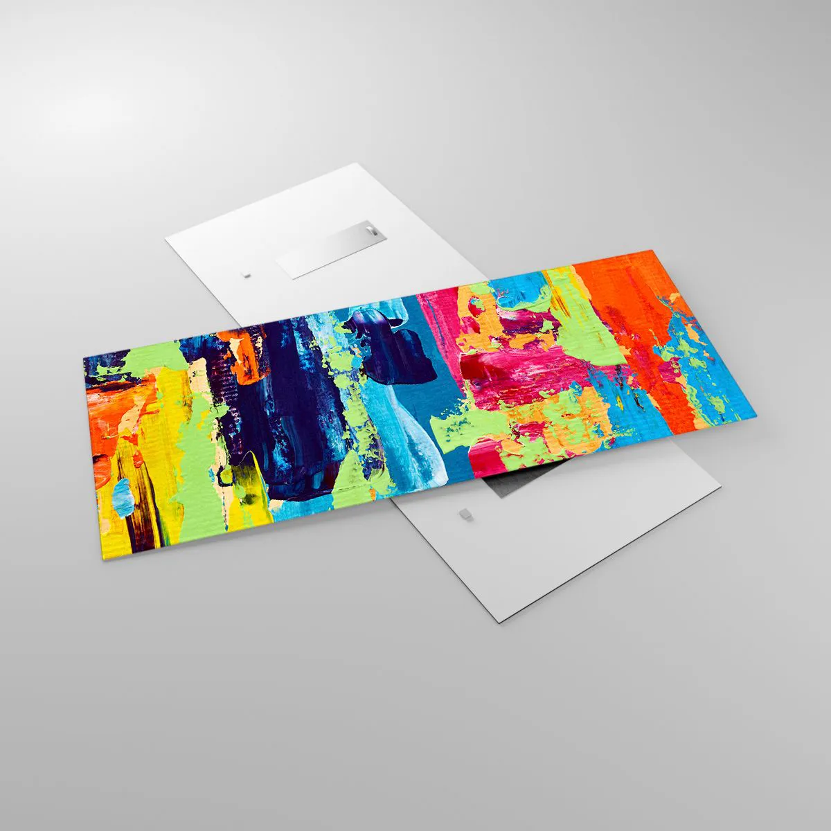 Tabloul pe sticlă este realizat din sticlă de 4 mm grosime. Marginile sticlei au o tăietură trapezoidală mată. Tabloul este sigur pentru utilizare și gata de agățat - are agățătoare metalice fixate pe spatele tabloului și distanțiere din spumă pentru a regla distanța uniformă a tabloului față de perete.