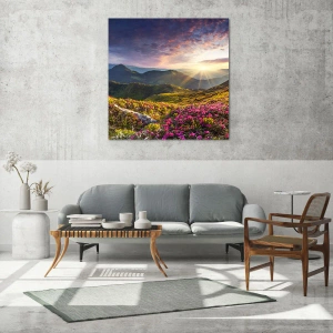 Tablou pe sticlă - Prospețimea unei dimineți de munte - 90x30 cm