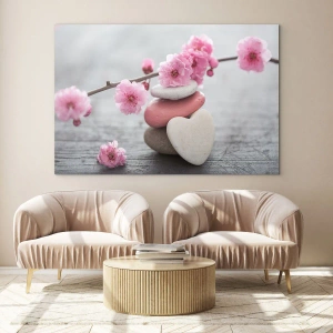 Motivul florilor de cireș și al pietrelor evocă estetica Zen, introducând o atmosferă de pace și echilibru în încăperi. Pictura va funcționa perfect ca punct focal decorativ sau va completa stilul minimalist sau scandinav.