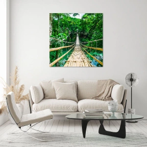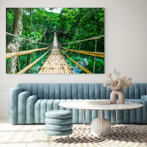Această pictură este o alegere excelentă pentru cei care doresc să insufle o atmosferă de aventură și exotism în interiorul lor. Nuanțele verzi ale frunzelor și reflexiile apei vor aduce armonie și o atmosferă relaxantă în camere precum sufrageria, dormitorul sau biroul. Podul suspendat simbolizează nu numai călătoria, ci și descoperirea de noi posibilități și conexiunea dintre lumi îndepărtate.