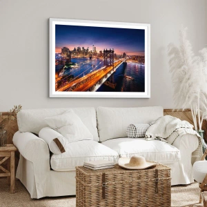 Poster în ramă albă - Pe un pod luminos către inima orașului - 40x40 cm