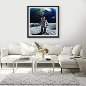 - Acest poster înfățișează un astronaut pe suprafața lunii, privind în jos spre Pământ. Perfect pentru pasionații de spațiu și iubitorii de artă inspirațională, vine cu o ramă neagră de 50x70 cm.
