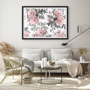 Poster în ramă neagră - Pierde-te în florile de trandafir - 91x61 cm