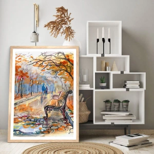 Poster în ramă de stejar deschis - Pășim împreună în toamnă - 30x30 cm
