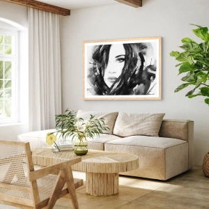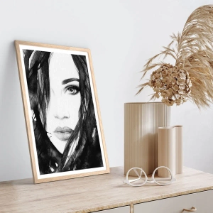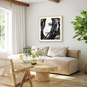Poster în ramă de stejar deschis - Studiu unei dame în alb și negru - 60x60 cm