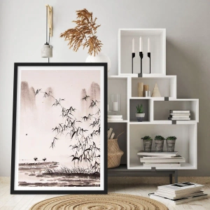 - Acest poster înfățișează un peisaj subtil din bambus, în stil oriental, în alb și negru. Perfect pentru interioare în stil Zen sau minimalist, vine cu o ramă neagră elegantă care îi sporește caracterul artistic.