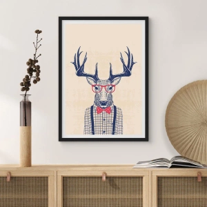 - Acest poster înfățișează o căprioară elegantă purtând ochelari și un papion pe un fundal bej. Acest design umoristic și original este perfect pentru interioarele moderne. Vine cu o ramă neagră elegantă pentru a completa aspectul.