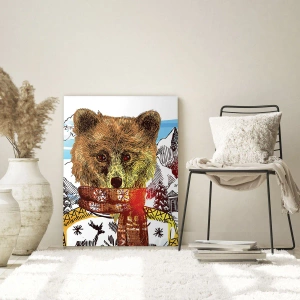 Ilustrația este caracterizată de un stil schițat care evidențiază detaliile subtile atât ale ursului, cât și ale împrejurimilor. Datorită culorilor bogate și compoziției unice, pictura se potrivește perfect în interioare decorate în stil scandinav, modern sau rustic. De asemenea, se potrivește perfect în atmosfera de iarnă și de sărbătoare.