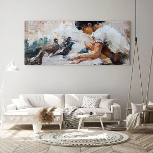 - Această pictură impresionistă înfățișează o fată hrănind păsările. Decorată în tonuri pastelate, este o decorațiune subtilă, perfectă pentru interioarele romantice și clasice.