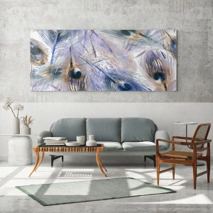 Tablou pe sticlă - Compoziția penelor de păun - 140x50 cm