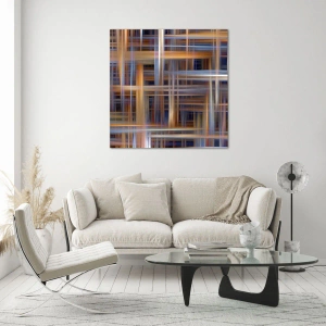 Tablou pe sticlă - Model geometric de linii și culori într-un stil abstract - 70x50cm - Țesut din lumină - Decorațiune modernă pentru perete pentru living și dormitor ARTTOR