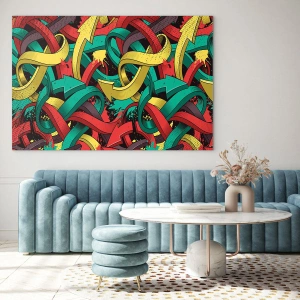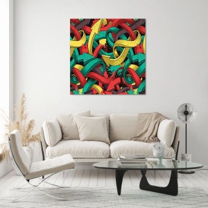 Tabloul pe sticlă este realizat din sticlă de 4 mm grosime. Marginile sticlei au o tăietură trapezoidală mată. Tabloul este sigur pentru utilizare și gata de agățat - are agățătoare metalice fixate pe spatele tabloului și distanțiere din spumă pentru a regla distanța uniformă a tabloului față de perete.