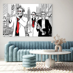 Tablou pe sticlă - Rapsodie urbană în negru și roșu - 80x120 cm