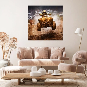 - O imagine dinamică care înfățișează o plimbare cu ATV-ul pe teren noroios. O decorațiune perfectă pentru pasionații de adrenalină și sporturi extreme, va accentua perfect caracterul oricărui interior.