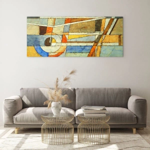 Tablou pe sticlă - O compoziție abstractă cu modele geometrice și culori calde. - 70x50cm - Cubismul în construcție - Decorațiune modernă pentru perete pentru living și dormitor ARTTOR