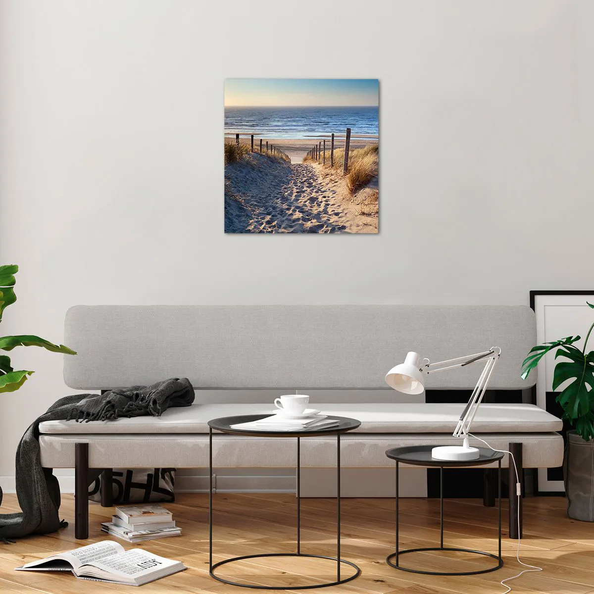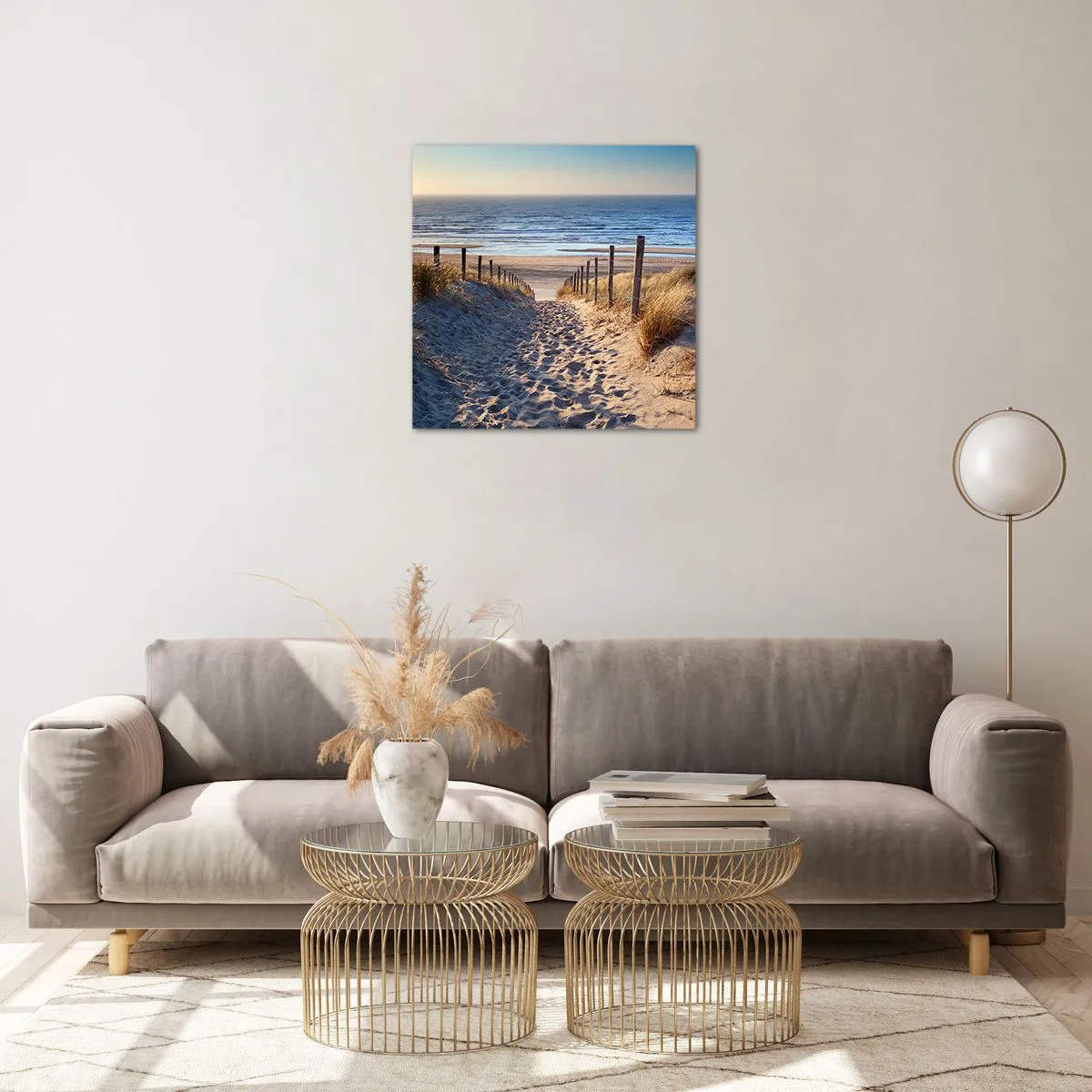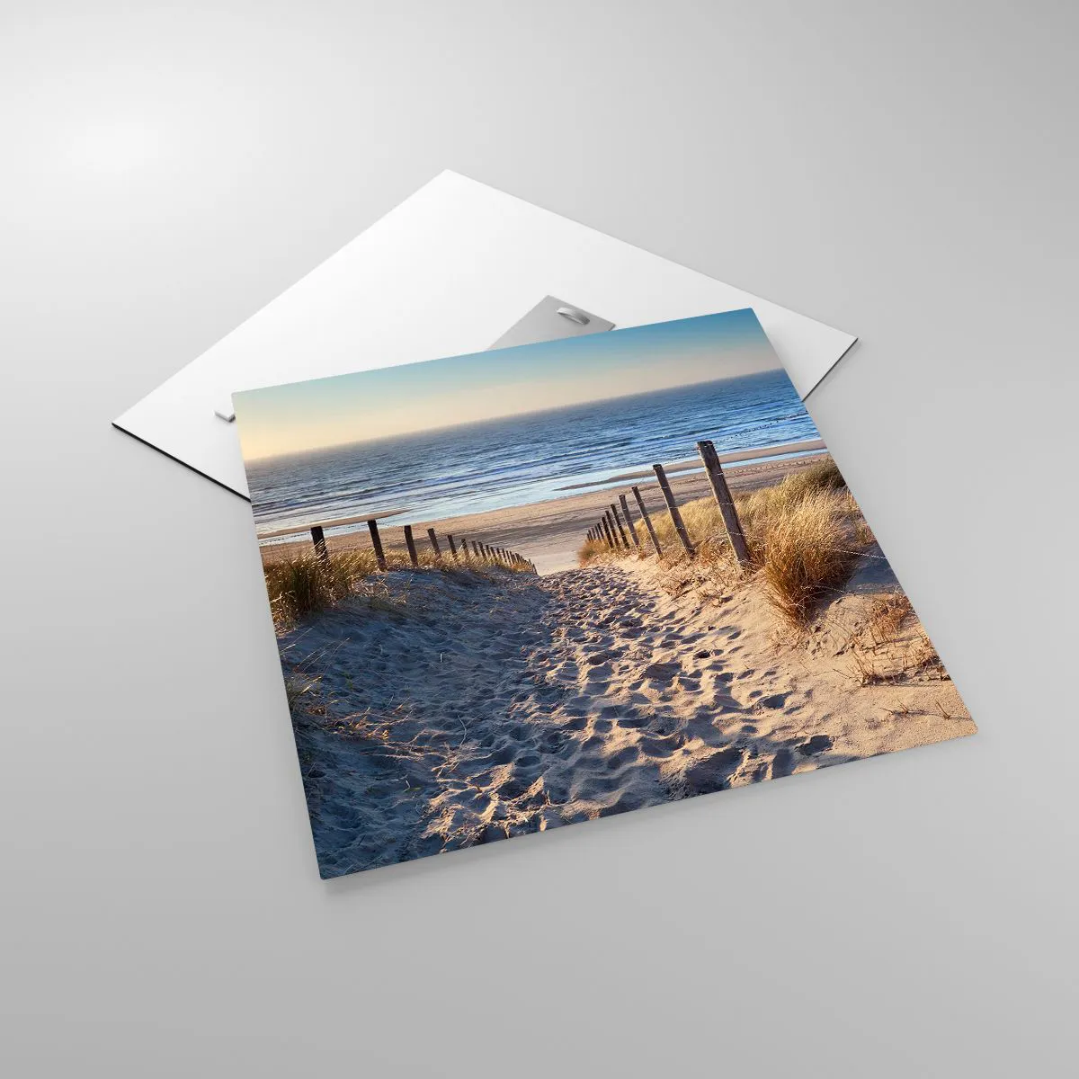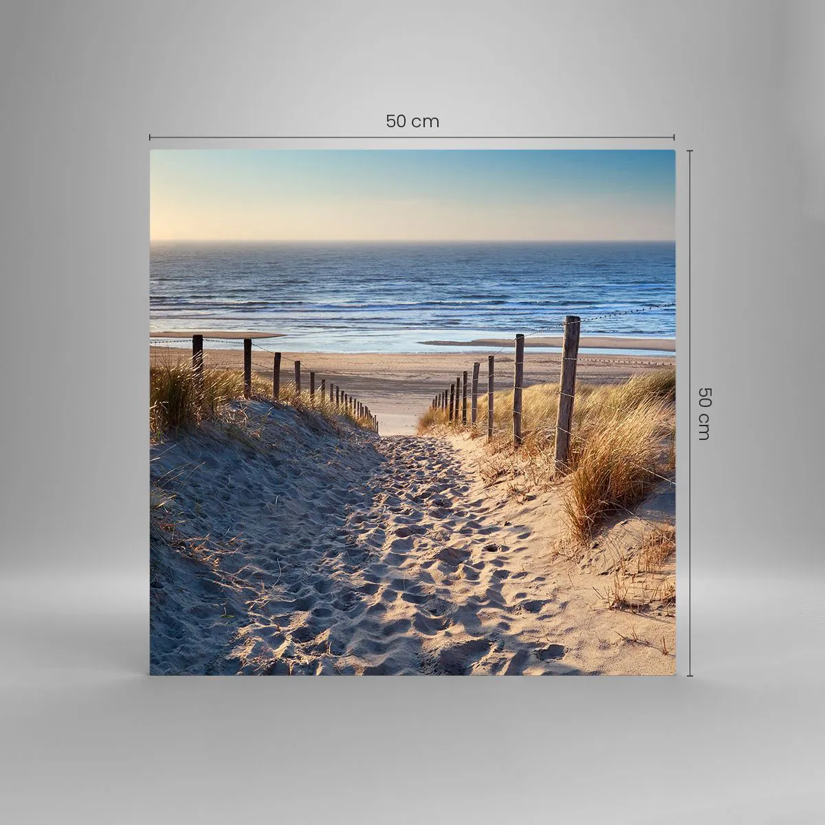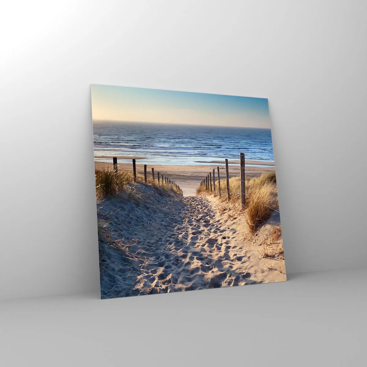 Tablou pe sticlă - Zumzet de mare, o plajă sălbatică printre ierburi... - 50x50 cm