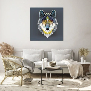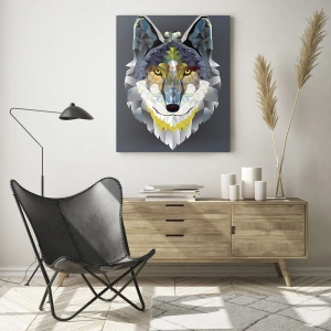 - Pictura înfățișează un lup într-un stil geometric pe un fundal întunecat. Grafica sa modernă și designul expresiv vor aduce eleganță și caracter oricărui interior.